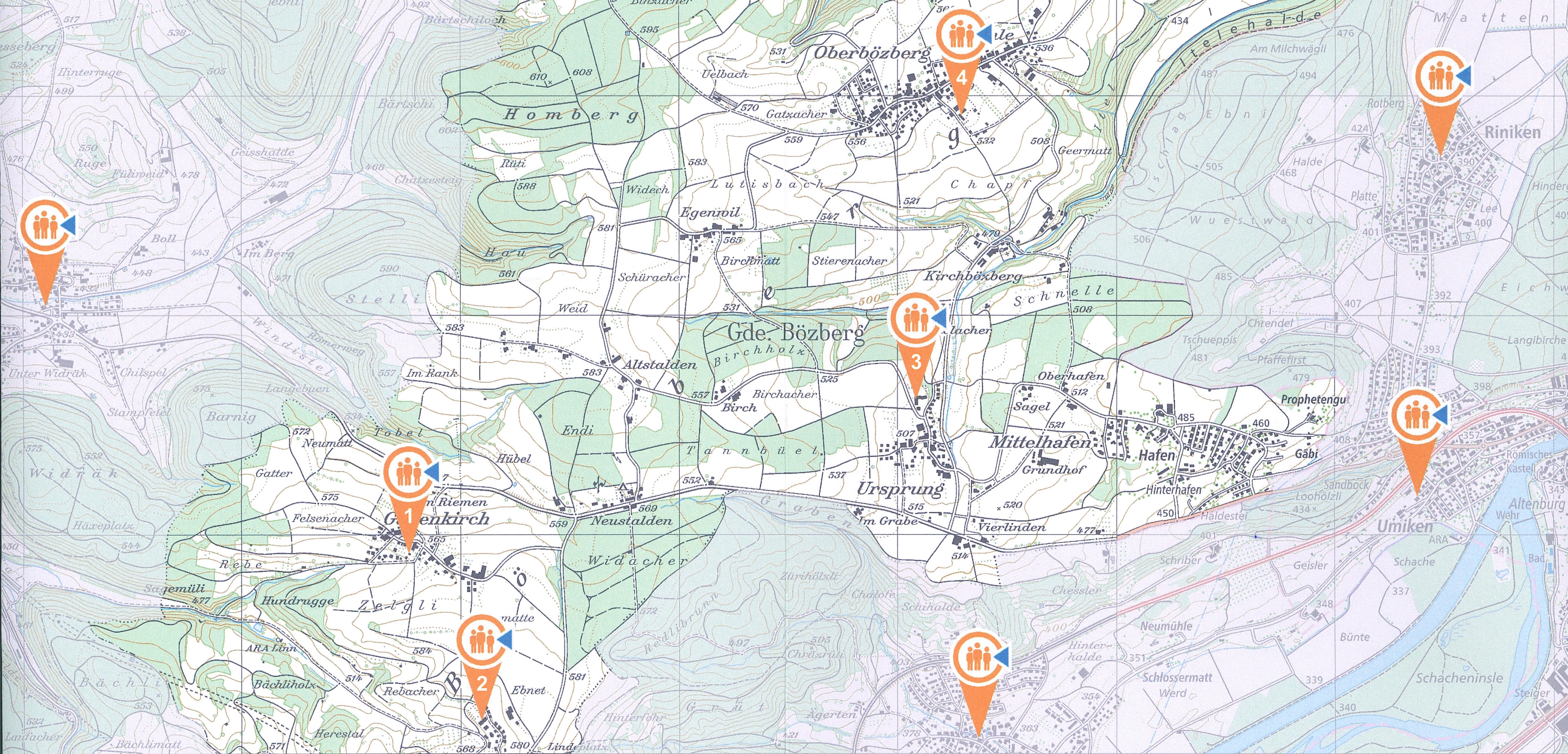 Die Notfalltreffpunkte in der Gemeinde Bözberg befinden sich in den Ortsteilen